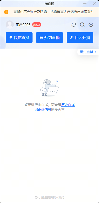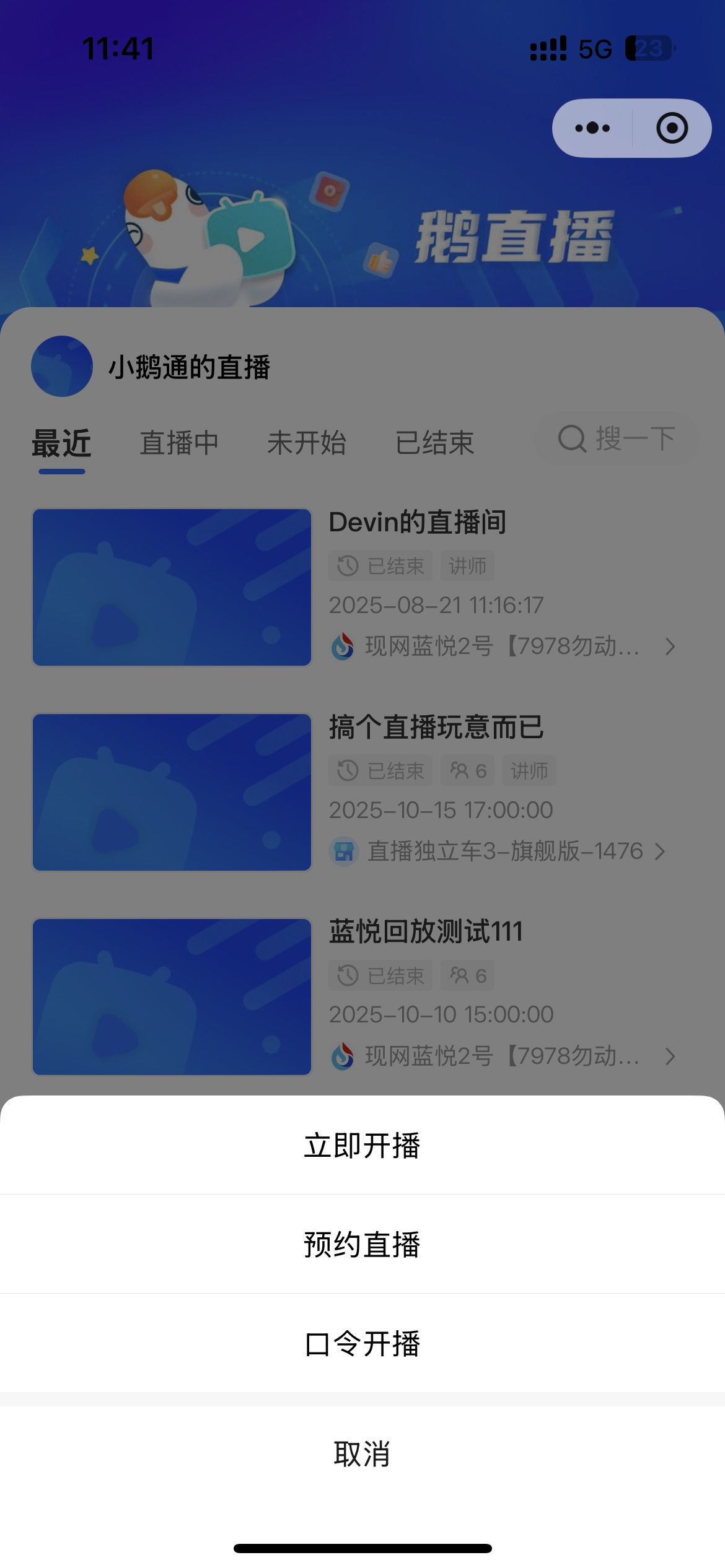目前直播SDK服务场景支持鹅直播口令开播或者OBS开播