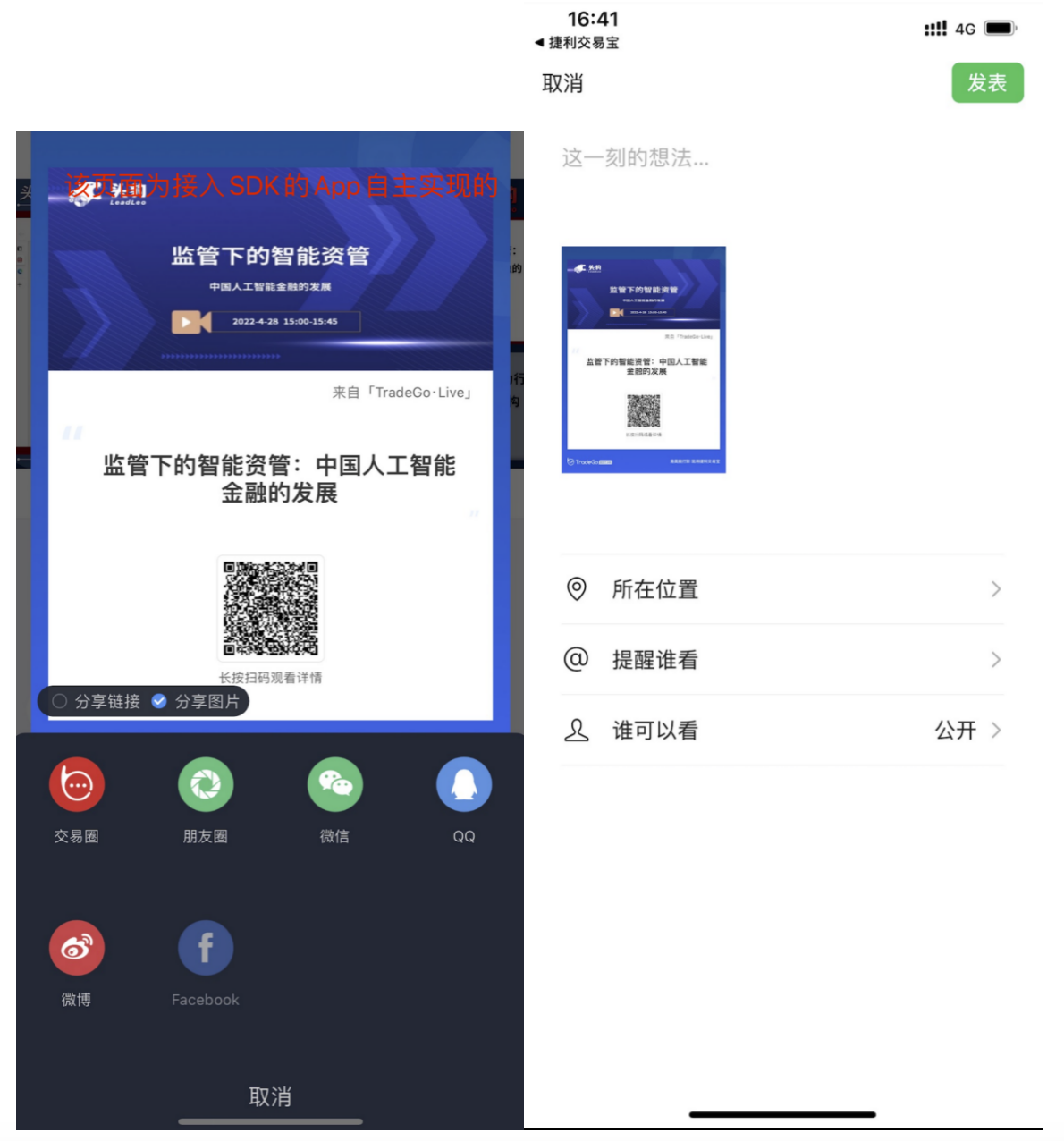 share()3、在设置的回调内接收分享的相关信息,然后App完成社会化分享