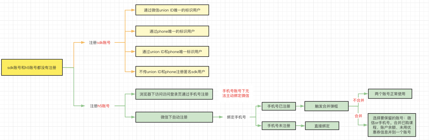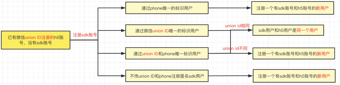 同时注册通过微信union ID唯一标识的sdk账号和h5账号,这两个账号是同一用户。